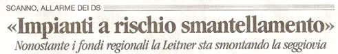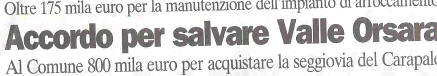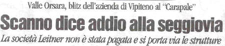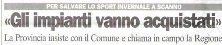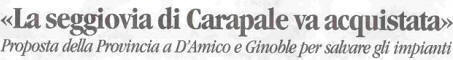 Questa mattina una decina di persone sono salite a Colle Rotondo. La Leitner starebbe mettendo in pratica la volontà di procedere allo smontaggio della seggiovia del Carapale. La gente attonita si chiede:" ma come, la Regione ha messo a disposizione i soldi al Comune per l'acquisto e la Leitner smonta l'impianto? Ma che sta succedendo?". Già sig. Sindaco che sta succedendo? E' solo un falso allarme o veramente la seggiovia tra qualche giorno non ci sarà più. Ma lei che sta facendo per evitare che ciò si verifichi? Si dia una smossa sig. Sindaco perchè chiudere la stalla quando i buoi sono scappati è un esercizio inutile. Come inutile sarà la ricerca dei responsabili alla quale lei sicuramente si impegnerà. Speriamo tanto che ci stiamo sbagliando, altrimenti al danno si aggiungerà sicuramente anche la beffa! |