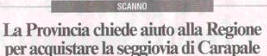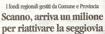 SMONTAGGIO SEGGIOVIA: L'ASSESSORE PROVINCIALE T. NANNARONE SCRIVE AL SINDACO DI SCANNO |